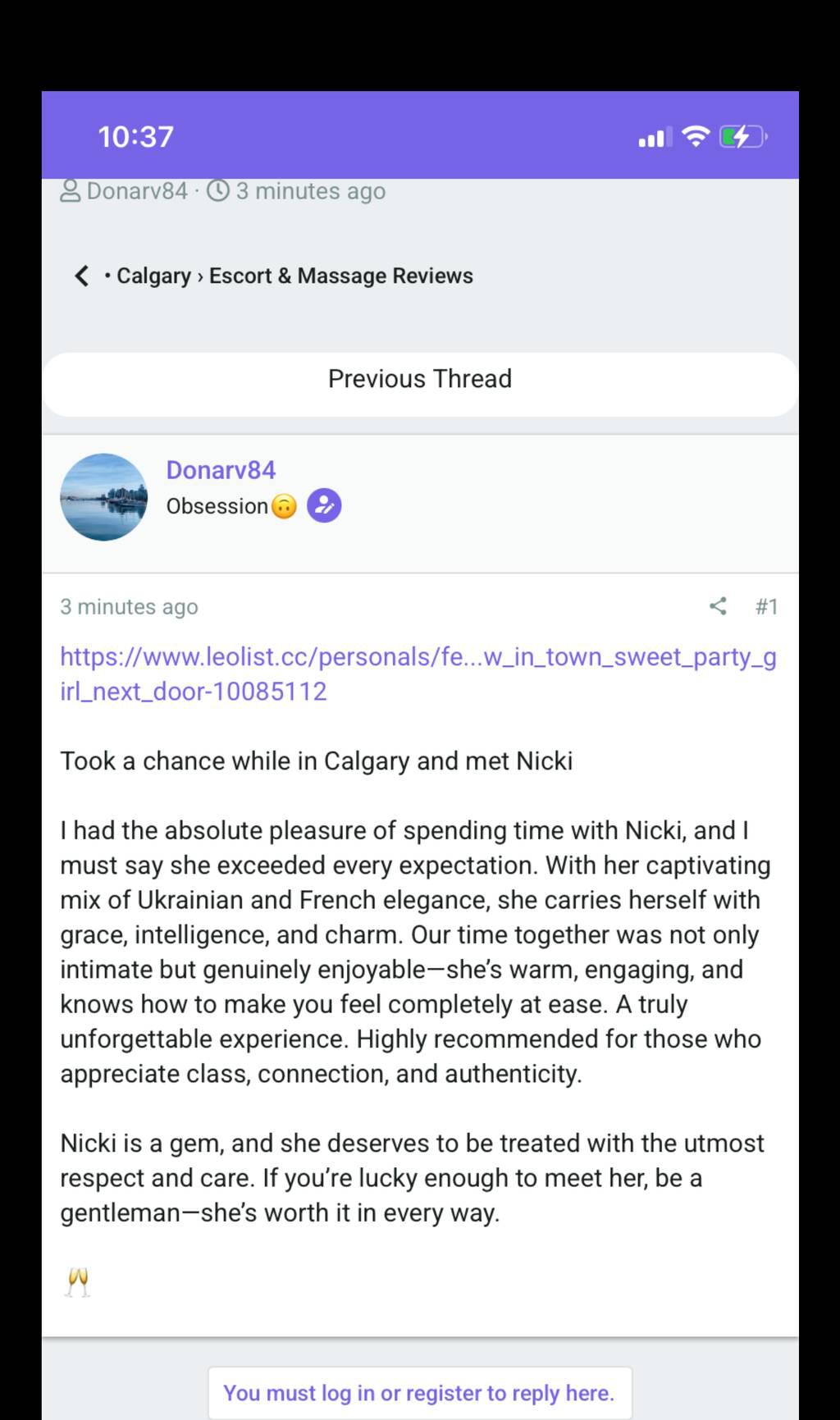 first things first, I don’t offer 15min appts and I don’t see black gentlemen, sorry! I'm Nicki, your sweet, sensual and sexy playmate... I'm a young experienced girl and my main focus is you and your pleasure. I make sure to leave you fully satisfied and wanting to see me again. I am very party friendly! I'm ALWAYS freshly showered and my nails and toes are always done.